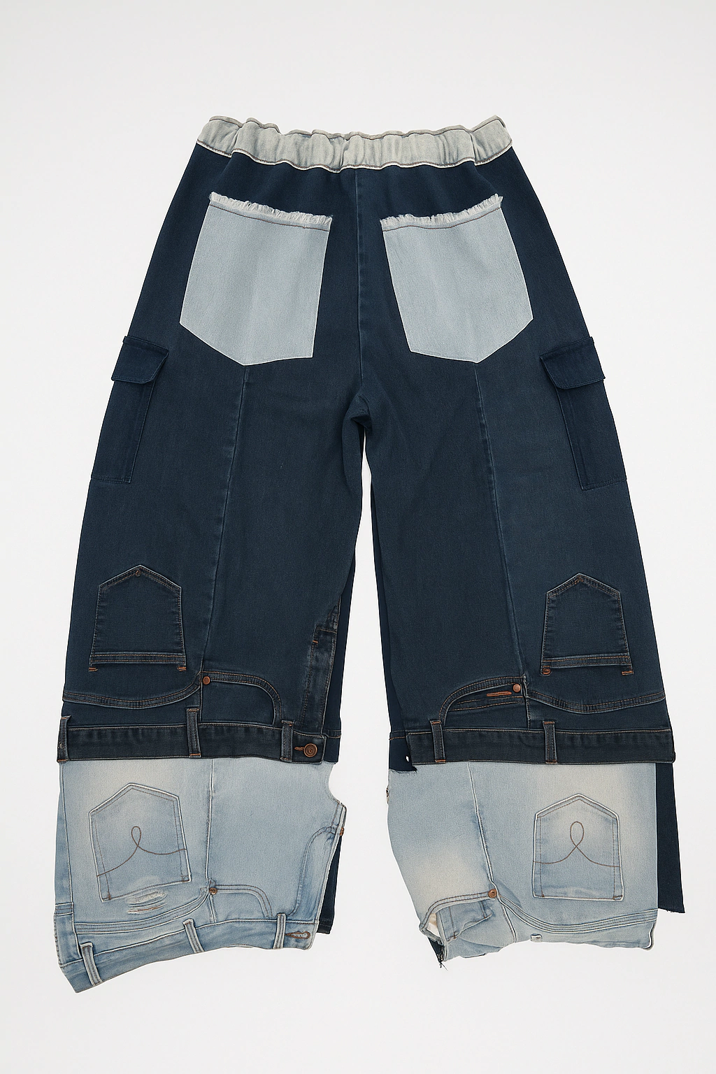 A calça monstro é a peça mais complicada de cortar e montar da Sem nome. Feita de 4 calças, ela tem o corte de cada perna diferente do outro o que dá características únicas para cada uma, sem repetições, destruindo o fast fashion que nunca seria capaz de nada igual.