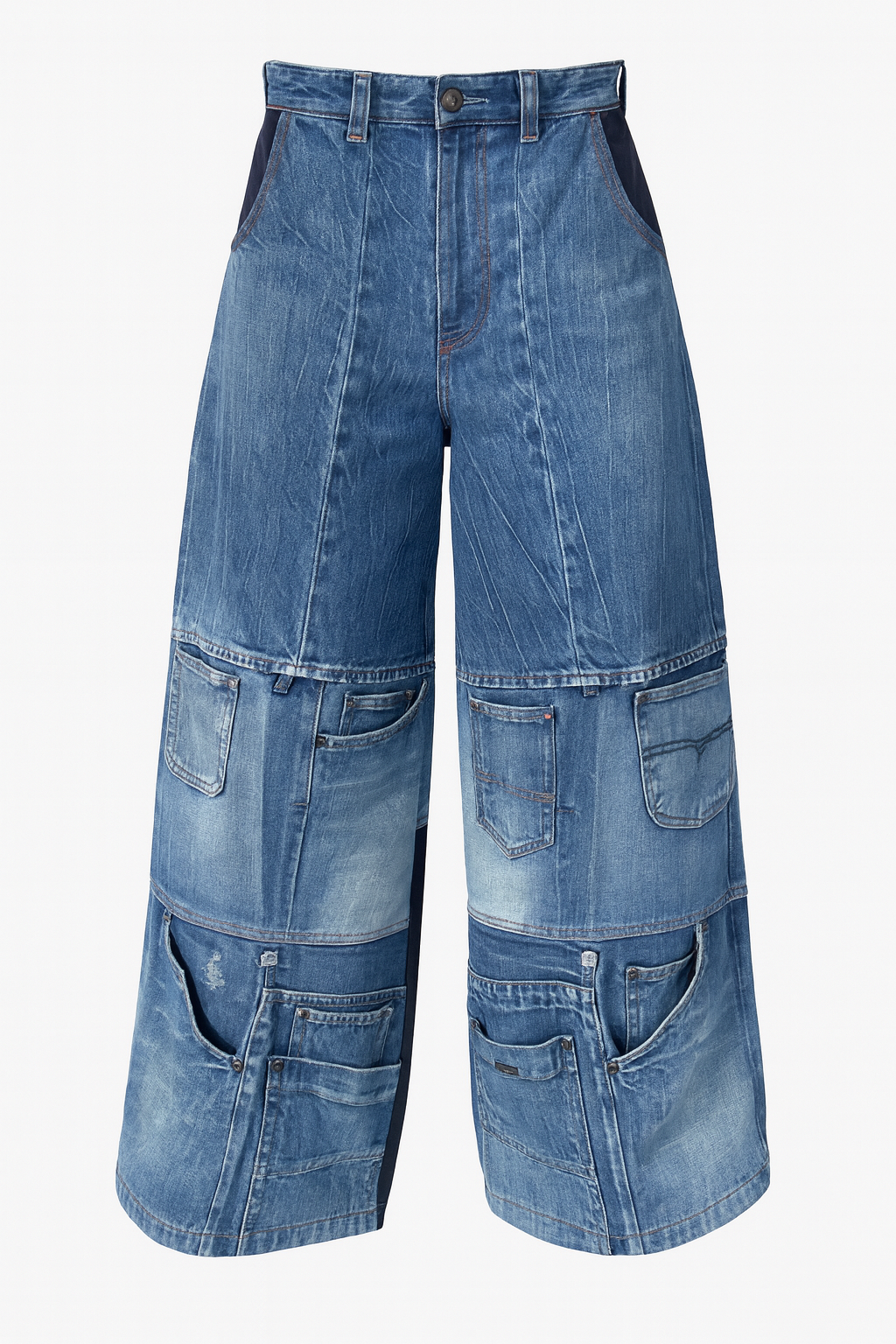 A calça monstro é a peça mais complicada de cortar e montar da Sem nome. Feita de 4 calças, ela tem o corte de cada perna diferente do outro o que dá características únicas para cada uma, sem repetições, destruindo o fast fashion que nunca seria capaz de nada igual.